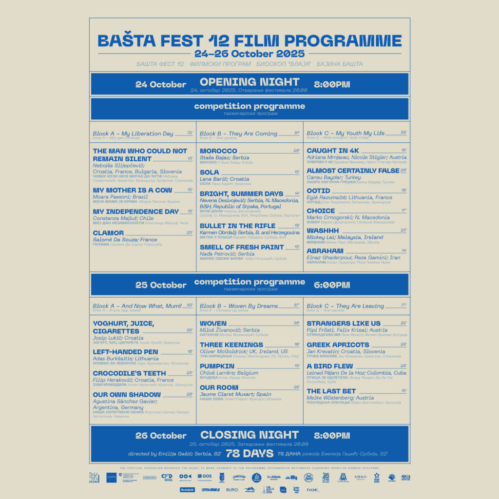 Nakon odlaganja 12. izdanja Bašta festa, internacionalni festival kratkog igranog filma u Bajinoj Bašti ipak će biće održan od 24. do 26. oktobra.