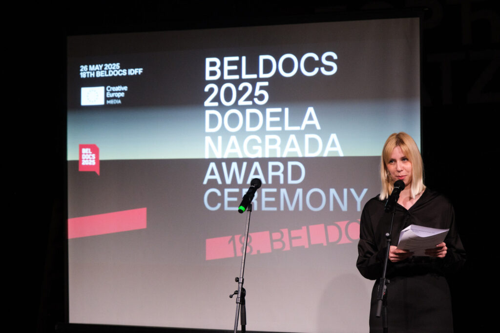 Foto:Andrija Radulović Foto:Andrija Radulović Foto:Andrija Radulović Dodeljene nagrade na 18. Beldocsu: Film "Krila i Tlo" odneo tri glavne nagrade u Srpskom takmičarskom programu autor: Nova.rs Kultura 27. maj. 2025. 13:27 0 Podeli vest: Pretposlednjeg dana 18. Beldocsa dodeljene su nagrade za najbolje filmove u Dorćol Platzu. Podeli vest: Oglas Žiri Srpskog takmičarskog programa na 18. izdanju Beldocs film festivala radio je u sastavu: Margo Meka, selektorka festivala Dei Popoli, Jeran Hugo Olson, reditelj, i Pavle Levi, filmski teoretičar i kritičar. “Žiri je bio impresioniran brojnim originalno osmišljenim i kvalitetno realizovanim filmovima. Tokom dugačke i bogate diskusije, nametnula se svest o važnosti razumevanja filma – pogotovo dokumentarnog filma – kao sinkretičke umetnosti: medija čija snaga izvire iz jedinstva forme i sadržaja, tematskih okvira i različitih elemenata filmskog jezika. U najostvarenijim filmovima, režija, kamera i montaža čine organsku celinu. To je princip kojim se žiri vodio pri odlučivanju o nagradama. Stoga, žiri je odlučio da tri nagrade – za najbolji film, kameru i montažu – dodeli filmu koji u svom pristupu bektaskoj zajednici u selu Kanatlarci uspostavlja jedinstvenu audio-vizuelnu kosmologiju, koja proističe iz duha i kulture upravo te zajednice. To je film Stefana Maleševića “Krila i tlo”, naveli su članovi žirija u obrazloženju. Nagrađena za montažu ovog filma je Jelena Maksimović, dok je Stefan Malešević dobio nagrade za najbolju kameru i najbolji film u Srpskom takmičarskom programu. Foto:Luka Knežević Strika | Foto:Luka Knežević Strika Stefan Malešević nije bio u Beogradu da primi nagrade, ali se zahvalio putem video poruke. “Hvala žiriju za ovo izuzetno važno priznanje. Velika je čast dobiti ne jednu, ne dve, već tri glavne nagrade i zaista niko od nas nije verovao da je ovo bilo moguće. Nadam se da će ove nagrade pomoći da film raširi svoja krila, a zahvalio bih se i svom fantastičnom timu bez koga ništa od ovoga ne bi bilo moguće”, rekao je Stefan. Žiri je dodelio i dva posebna priznanja filmovima “koji izuzetno inventivno pristupaju tematici koju obrađuju” – Milanu Milosavljeviću za kratki film “Skriveno u lišću” i Ivi Radivojević za film “Kada je zazvonio telefon”. Žiri Međunarodnog takmičarskog programa na 18. izdanju Beldocs film festivala radio je u sastavu: Vojček Didsko, selektor festivala Millenium Docs Against Gravity, Dragana Jovanović, rediteljka i Igor Bezinović, reditelj. Nagrada za najbolji film Međunarodnog takmičarskog programa pripala je rediteljki Nikol Vogel za film “Pejzaž i bes.” “Pod teretom tišine, s poetskim strpljenjem, ovaj film nas odvodi do granice. Nejasna granica u magli, gde ljudi hodaju po zarđalim minskim poljima – i doslovno i metaforično. Ovu granicu, i njoj slične, već poznajemo iz novinskih izveštaja, iz površnih razgovora i iz pogleda upućenih „drugima“ koji prolaze pored nas. Ali ovaj film prikazuje i one u pokretu i one koji ostaju, s dubokim poštovanjem, strpljenjem i nežnošću. Međunarodni žiri dodeljuje glavnu nagradu filmu Pejzaž i bes. Ovaj film dokazuje da su empatija i međusobno razumevanje mogući i pruža nam nekoliko kapi optimizma, toliko neophodnih u svetu u kojem danas živimo”, izjavili su predstavnici žirija u obrazloženju. Nagradu je u ime Nikol Vogel primila zamenica ambasadorke Švajcarske, Kornelika Kamenzind, koja je izjavila da joj je jako drago što je baš film iz Švajcarske odneo ovako veliku nagradu festivala, dok se rediteljka uključila preko video bima rečima: “Hvala Beldocs festivalu, mnogo mi znači što sam dobila ovu nagradu, iskreno i duboko sam dirnuta, pre svega što ne dolazim s Balkana i što sam sebi često postavljala pitanje da li je pametno što sam ovo radila i otišla na hrvatsko-bosansku granicu i pokušala da zabeležim nešto jedinstveno”. Posebno priznanje žiri Međunarodnog takmičarskog programa dodelio je filmu “Simon i Marijana” u režiji kanadskih autora Pjer-Lika Latulipa i Martina Furnijea, koji su bili i gosti Beldocsa i koji su izašli na binu da prime nagradu i zahvalili se Beldocsu, rekavši da im je čast što su u Beogradu, a da im je nagrada dala podstrek za dalji rad. Pjer Lik Latulip i Martin Furnije Foto:Preventer | Pjer Lik Latulip i Martin Furnije Foto:Preventer U svom obrazloženju, žiri je naveo da je ovo film o ljubavi koja prožima prostor između života i smrti. Bez ijednog pogrešnog tona, bez i jedne suvišne reči, slavi život i nežnost duboke ljudske povezanosti. Međunarodni žiri Beldocs festivala posebno pominje film “Simon i Marijana” – film o protoku vremena i snažna izjava o bolu i lepoti življenja. Za nagradu za Najbolji kratki film takmičilo se 17 kratkih ostvarenja, a odluku o najboljim filmovima doneo je žiri u sastavu: Imam Hasanov, direktor festivala Doku Baku, Nikola Radić, filmski kritičar i teoretičar, i Tara Gajović, rediteljka. Nagrada za najbolji film u selekciji kratkometražnih pripala je filmu “Obična kruška” slovenskog reditelja Gregora Božiča, koji se zahvalio Beldocsu video porukom. U obrazloženju za ovu nagradu, žiri kaže: “Prateći naučnike iz budućnosti koji analiziraju snimke iz prošlosti, “Obična kruška” ističe se kao kompleksna dokufikcija, koja se hvata u koštac sa klimatskom krizom. Odluka da se posmatranje naše oslabljene veze sa zemljom predstavi iz perspektive budućnosti ujedno je i upečatljiva i dirljiva, budući da podvlači važnost klimatskog delovanja i vrednost drevnog znanja. Sa svedenim, ali evokativnim vizuelnim rešenjima, izvanrednom fotografijom i scenografijom, ovaj konceptualno složen film poziva gledaoce da se zapitaju o onome šta gubimo kada presečemo vezu sa prirodom. Film Gregora Božiča je poetična i pravovremena refleksija na teme održivosti, nasleđa i povezanosti ljudi i prirode”. O