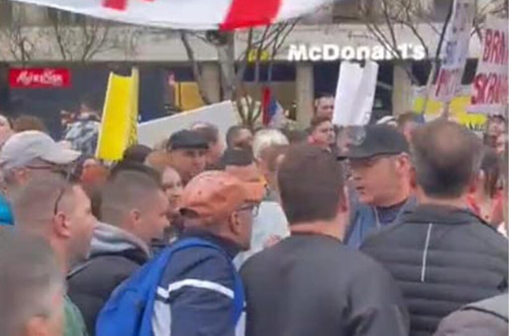 Ali, na protestu održanom 15. marta Arsenijevića su, zajedno s drugima, koji su nosili gruzijsku zastavu kao i zastavu EU, napali vulgarni nasilnici u dubokom uverenju da glavni narativ ovog svenarodnog pokreta zapravo pripada njima, saopštilo je Udruženje Krokodil.
