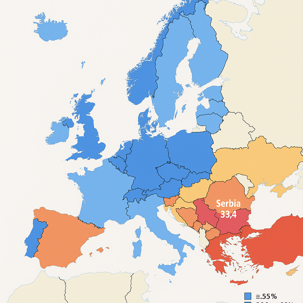 Prema poslednjim podacima Eurostata za 2022. godinu, Srbija se nalazi među zemljama sa najnižim udelom visokoobrazovanih građana u Evropi. U populaciji starosti od 25 do 74 godine, samo 23,4% stanovništva ima završeno tercijarno obrazovanje, što Srbiju svrstava na 32. mesto od 35 analiziranih zemalja.