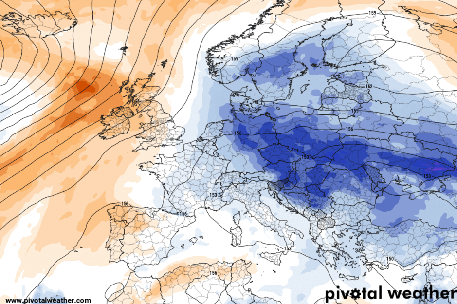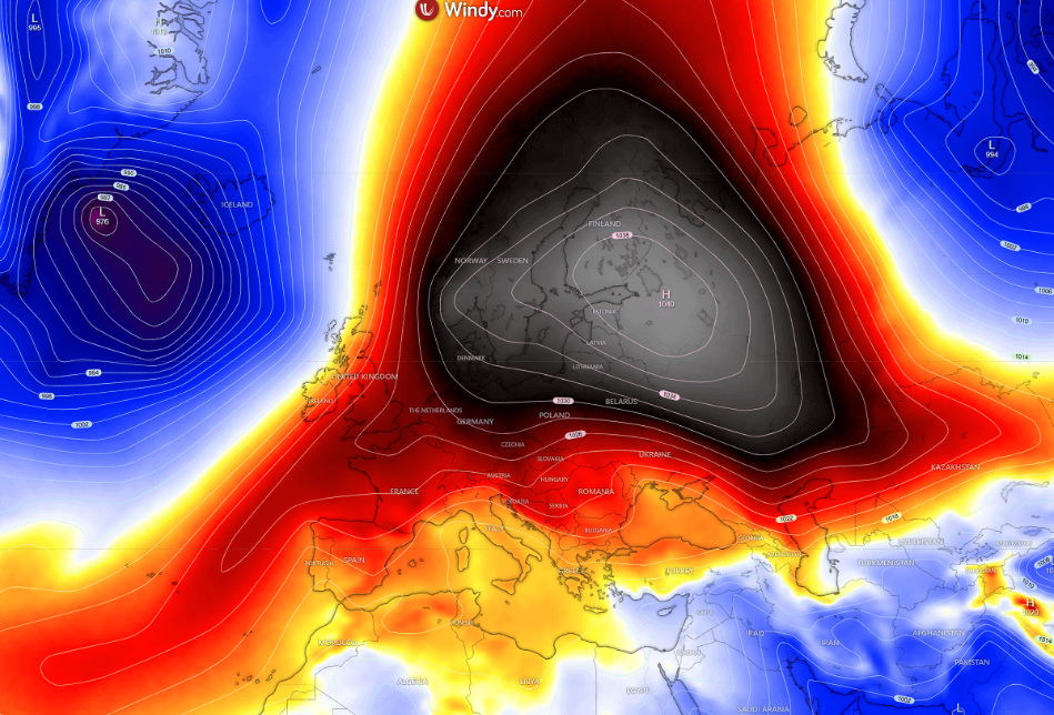 Takav raspored sistema preokreće uobičajeno strujanje, pa vetrovi sada duvaju s istoka i severoistoka, donoseći znatno hladniji vazduh iz Rusije prema ostatku kontinenta.