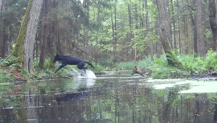 U šumi je kamera koja pripada poljskoj nevladinoj organizaciji SAVE Wildlife Conservation Fund zabeležila nešto izuzetno. Snimljeni su vukovi kako prelaze potok i potom skaču na obalu s druge strane. Dva vuka bila su potpuno crna, što je za ovu vrstu veoma retka boja, budući da su vukovi u Evropi uglavnom sivi, često s crvenkastim ili crnim nijansama.