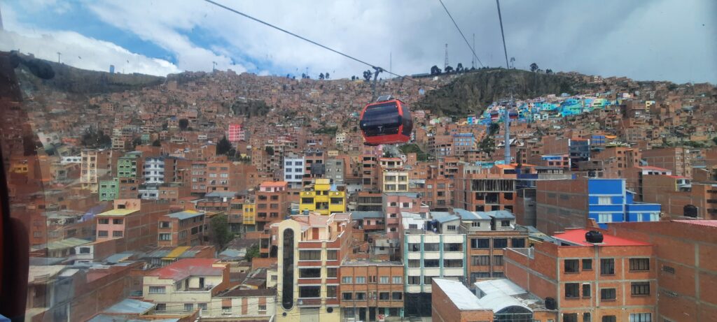Naime, zbog izuzetno strmog terena i uskih ulica, razvijen je sistem Mi Teleférico i to najveći i najrazvijeniji sistem žičara u urbanom okruženju na svetu. Mreža obuhvata 10 linija i više od 33 kilometra dužine, kabine stižu svakih nekoliko sekundi i mogu da prevezu do desetak ljudi. A kad se popneš na El Alto, taj skromni La Paz stvarno deluje kao neki grad budućnosti.