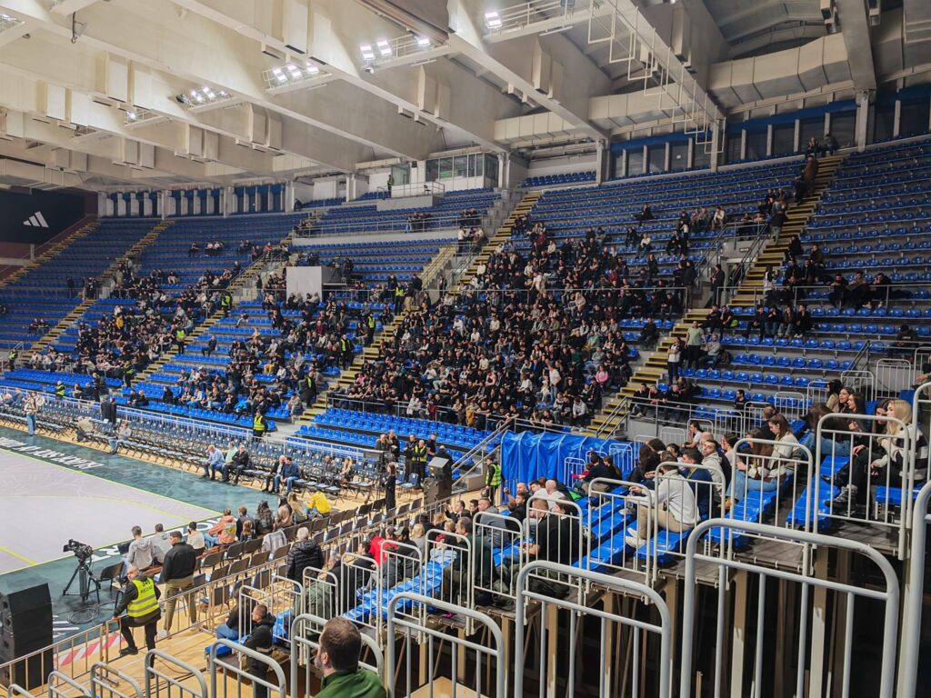 Samo pola sata pred početak utakmice tribine hale Pionir nisu bile ni do pola popunjene, što možete videti na slikama iznad i ispod teksta.