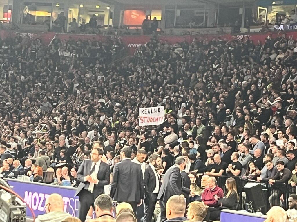 "Realno, studenti", pisalo je na transparentu koji su videli svi navijači Partizana tokom meča 34. kola Evrolige protiv Real Madrida.