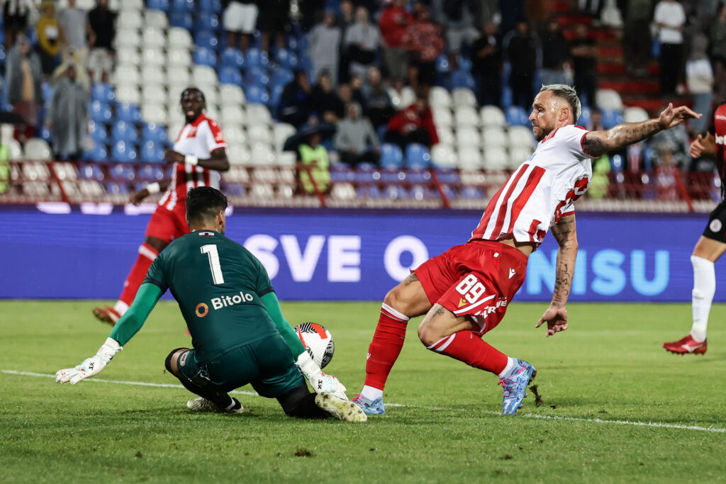 Zvezda je od početka pokazala da želi što pre da reši pitanje pobednika, pa je nakon promašene stopostotne šanse i pogođene stative brzo i postigla gol – već u osmom minutu.