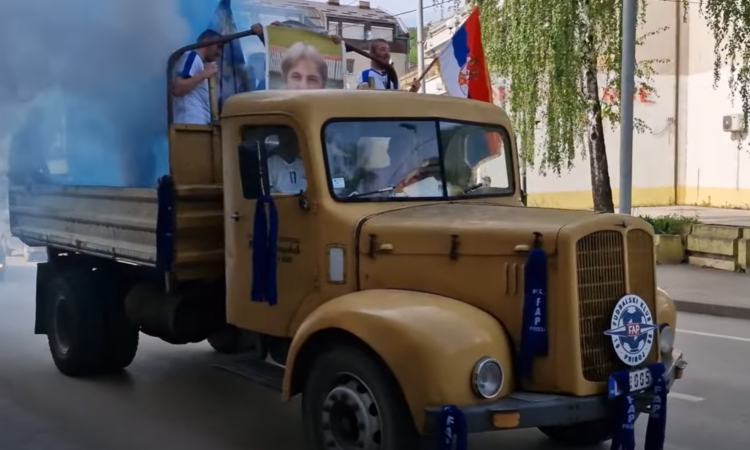 Vozili su se po gradu kamionom iz FAP fabrike starim 70 godina, a uz to su i pevali pesme karakteristične klubu.