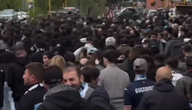 Oko 2.000 policajaca je bilo stacionirano na različitim tačkama oko Olimpijskog stadiona u Rimu, a sukob je počeo kad su navijači Lacija pokušali da probiju policijski kordon.