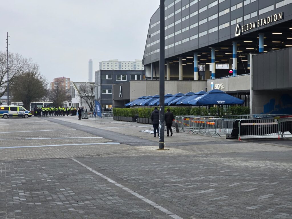 Očito da švedska policija ne želi ništa da prepušta slučaju, pa je pet kombija moglo da se vidi i nekoliko desetina policajaca koji se spremaju za „delije“.
