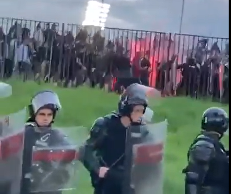 Na snimku koji se pojavio na društvenim mrežama vidi se kako huligani ulaze u obračun sa policijskim snagama.