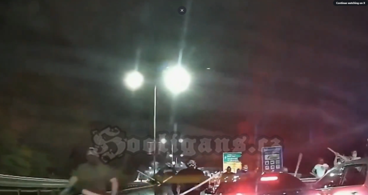 Na snimku koji je objavljen na stranici „Hooligans.cz“ vidi se grupa navijača sa maskama naoružana motkama kako dotrčava do vozila u kojim su se nalazili Poljaci.