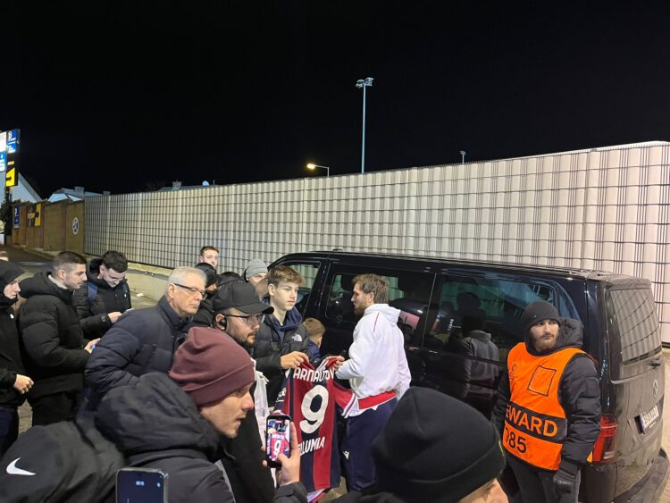 Reprezentativac Austrije je zastao i pozdravio okupljene, a posebno je obradovao jednog dečaka, po svemu sudeći Austrijanca, koji mu je doneo njegov dres iz Bolonje, što je Zvezdin napadač potpisao.