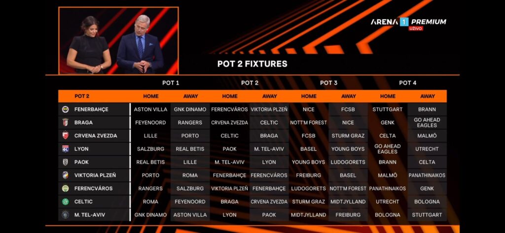 Drugi šešir: Fenerbahče, Crvena zvezda, Braga, Lion, PAOK, Plzenj, Ferencvaroš, Seltik, Makabi Tel Aviv