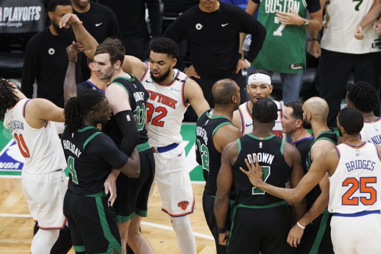Džejlen Braun, najbolji igrač Bostona u izostanku Džejsona Tejtuma, dobio je „prljav“ udarac u međunožje od strane Džejlena Bransona, lidera Njujorka.