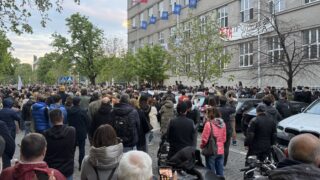 Veliki broj građana ispred Pete gimnazije: Roditelji se protive odluci Dejana Vuka Stankovića da đaci budu izmešteni u osnovne škole