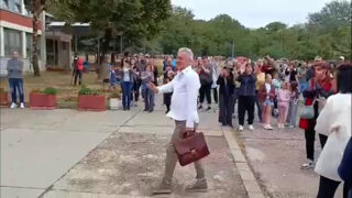 Roditelji škole u Mirijevu velikim aplauzom dočekali smenjenog Milana Krstića: Očekuje se dolazak i novog SNS direktora sa obezbeđenjem VIDEO