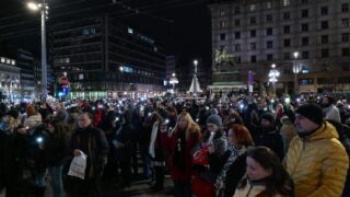 Crveni tepih, bajkeri, baklje i pesma „Pada vlada“: Pogledajte koje je izgledao doček studenata iz Petrovca na Mlavi na Trgu republike FOTO