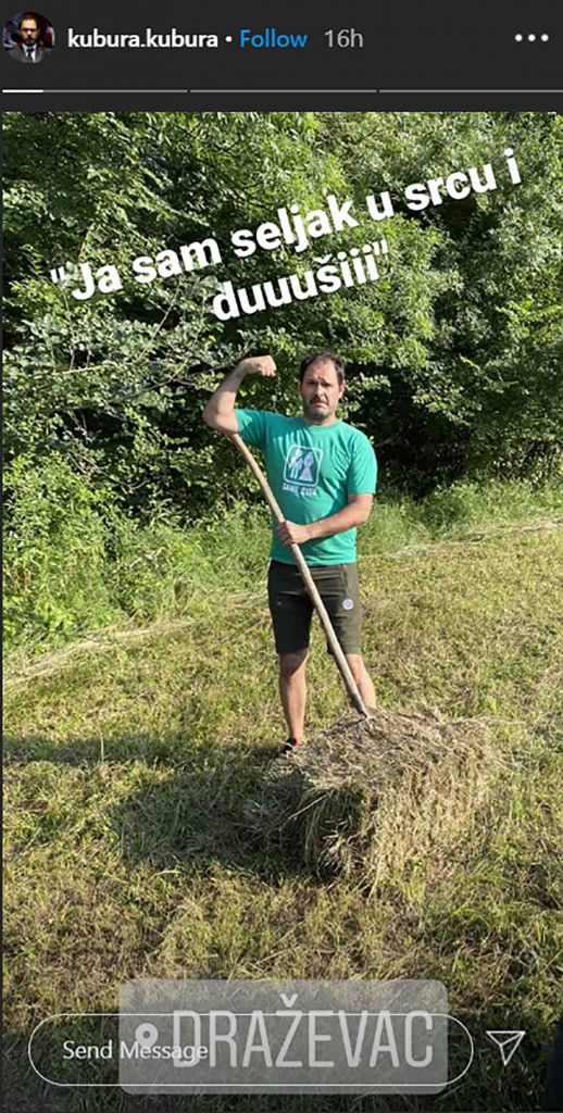 „Gajim životinje, imam svinje i ovce takođe. Imam svoju baštu, paradajz, krastavac, tikvice. Nije mi teško da sve radim, u detinjstvu sam dolazio na selo kod bake i dete, oduvek sam voleo tu da boravim. Kada sam ovde nema stresa uopšte. Čim čovek sedne u auto i 30 metara napravi nešto se desi, odmah neka nervoza. Ovde je to drugačije. Ljudi treba da se vrate prirodi, da ekološku svest probude, da nauče da bolje brinu o prirodi. Toliko je sve zagađeno i smeće je na sve strane, angažujemo decu da čistimo divlje deponije i sav taj haos sređujemo“, rekao je glumac, koji je jednom prilikom govorio i o proširenju svog biznisa: