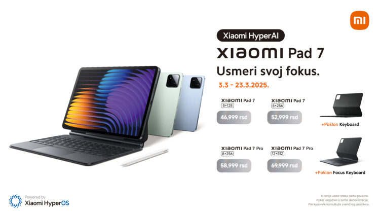 Xiaomi je ovu godinu započeo uz mnoštvo novih uređaja i sjajnih promocija, a istim tempom nastavlja i ovog meseca! U periodu od 3. do 23. marta 2025. godine, kupovinom Xiaomi Pad 7, Xiaomi Pad 7 Pro ili bilo kog pametnog telefona iz najnovije Xiaomi 15 serije, ostvarujete pravo na vredne poklone koji će podići vašu produktivnost i zabavu na viši nivo!