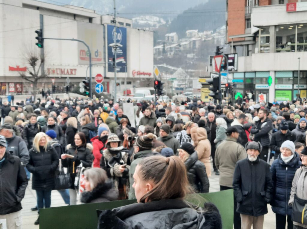 A zatim šetnja kroz grad, uz skandiranje “ruke su vam krvave”, “ubice”, “odlazite” i poruke sugrađanima “izlazite napolje”.