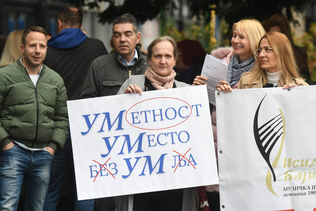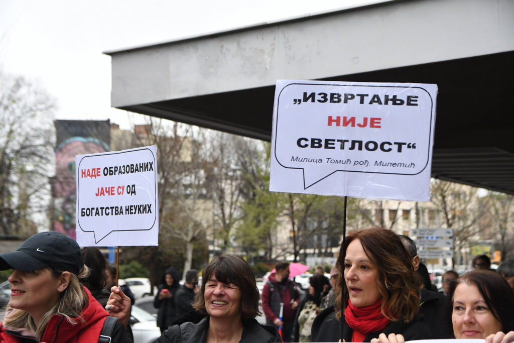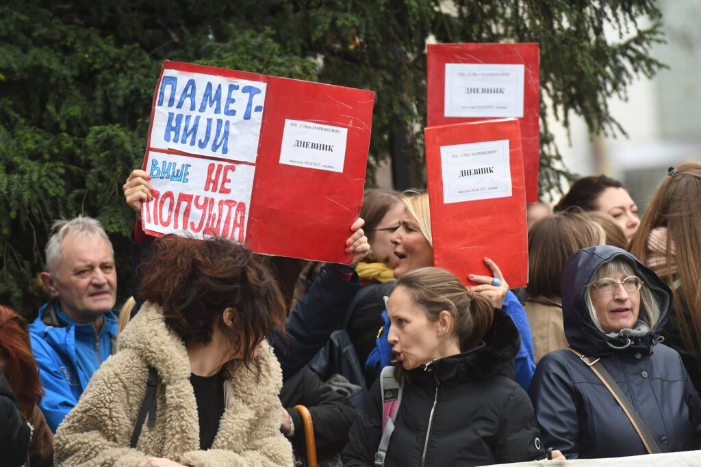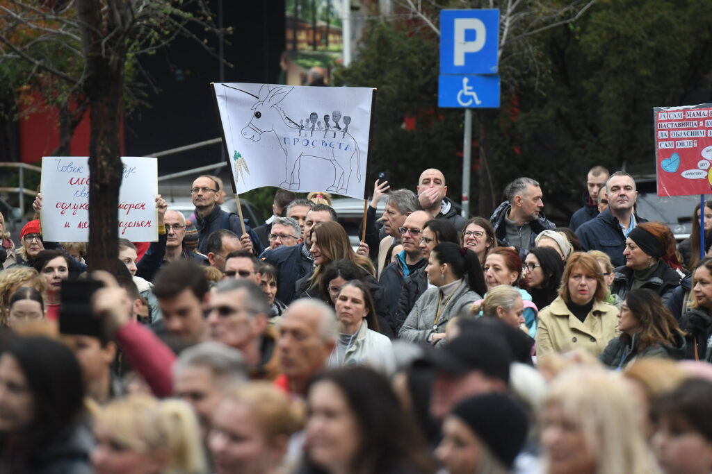 Oni traže i ukidanje završnih i maturskih ispita i poboljšanje materijalnog položaja zaposlenih u prosveti, kao i depolitizaciju obrazovnih ustanova.