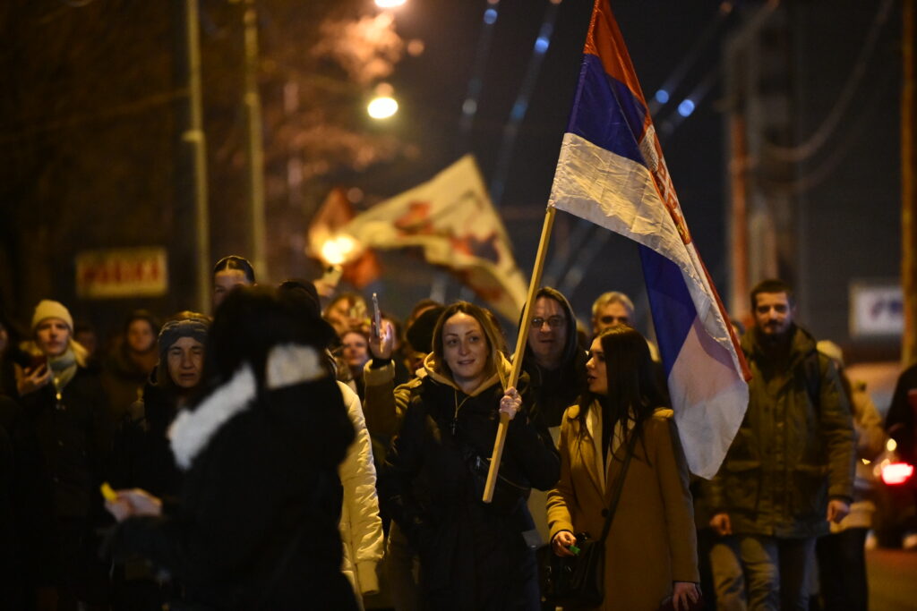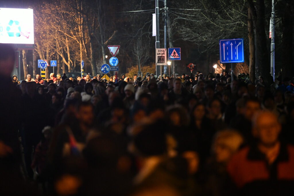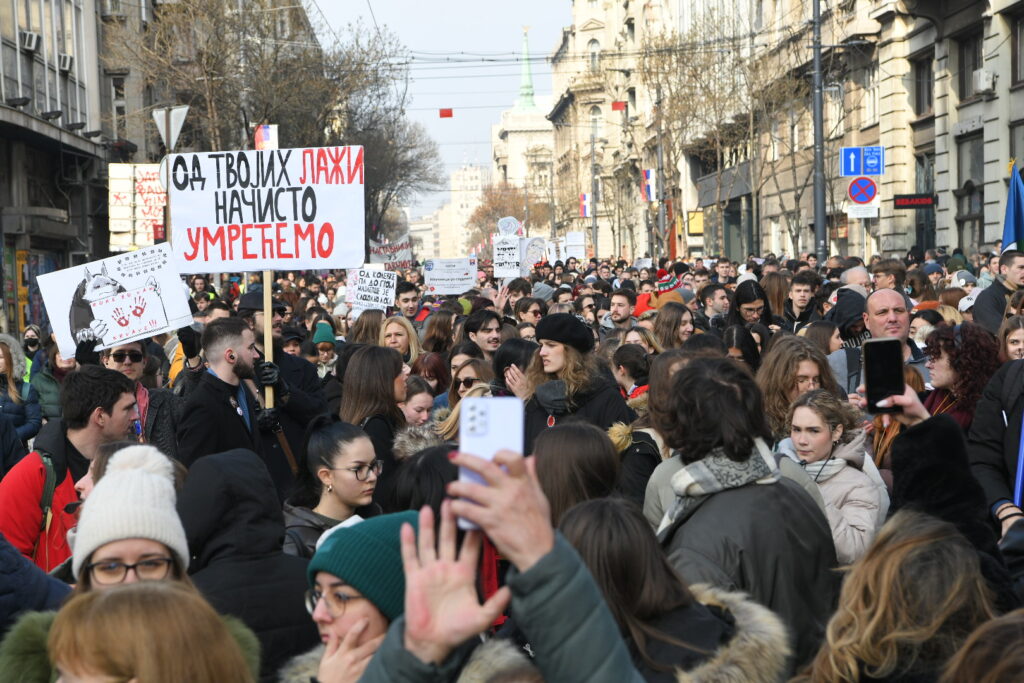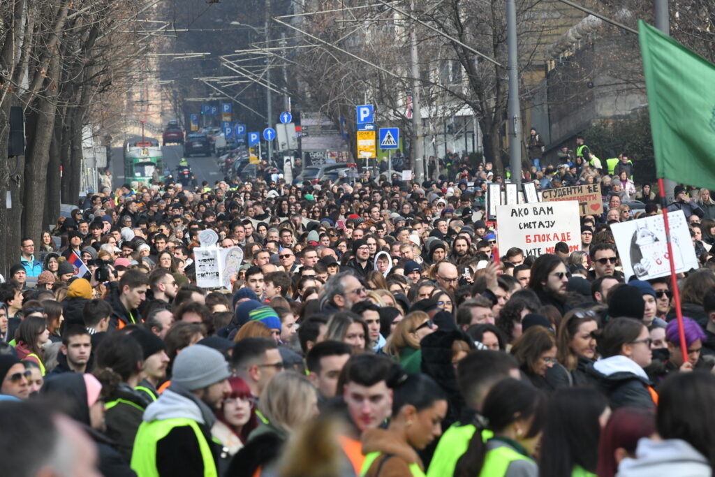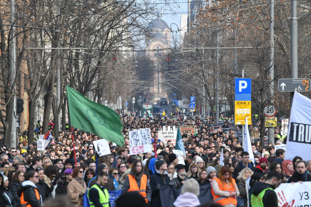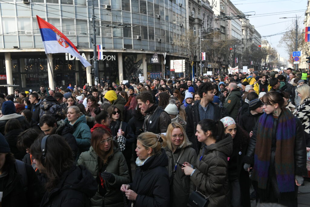 U Ulici kralja Milana stiže kolona sa Studentskog trga. Osim studenata, među njima su i penzioneri.