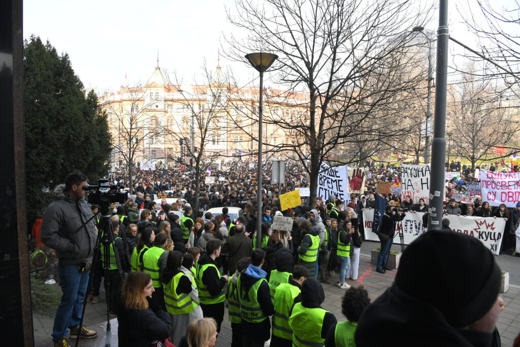 Veliki broj studenata i đaka već je stigao ispred Ministarstva prosvete gde će u organizaciji osam fakulteta sa Trga republike biti održan protest. Profesori protestuju zbog kazni i disciplinskih mera koje Ministarstvo donosi protiv nastavnika i profesora u osnovnim i srednjim školama koje su obustavile rad.