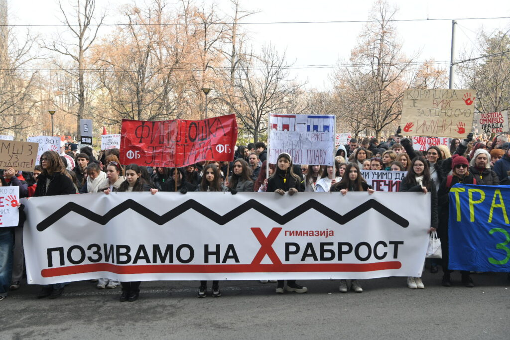 Veliki broj studenata i đaka otišao je sa protesta ispred Ministarstva prosvete gde je u organizaciji osam fakulteta bio održan protest. Profesori su protestovali zbog kazni i disciplinskih mera koje Ministarstvo donosi protiv nastavnika i profesora u osnovnim i srednjim školama koje su obustavile rad.