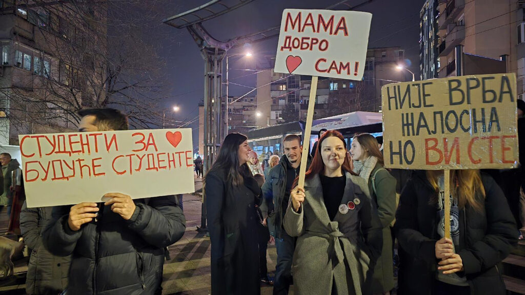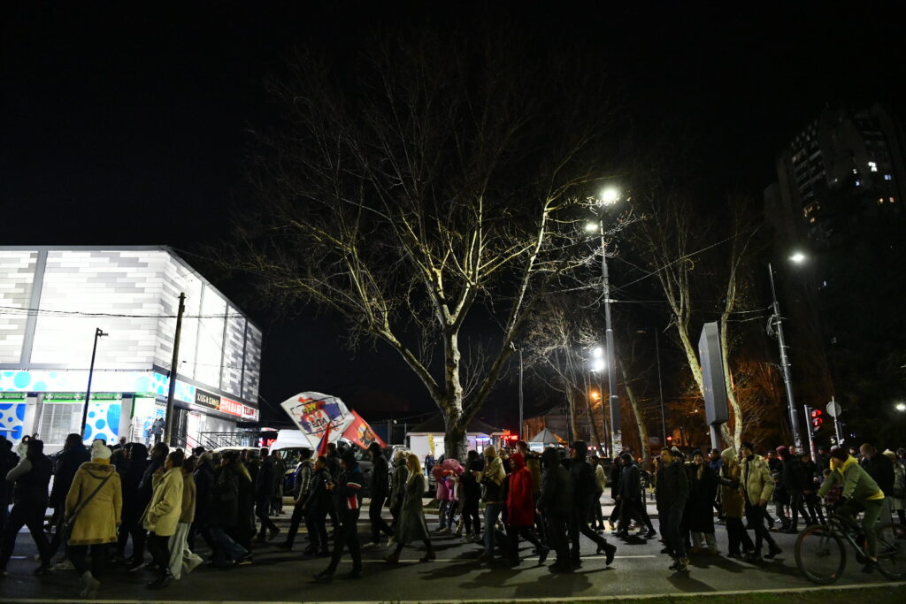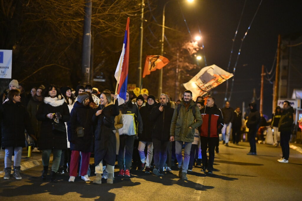 Građani koji su krenuli večeras u protestnu šetnju sa Banjice susreli su se sa studentima Fakulteta organizacionih nauka i Fakulteta političkih nauka.