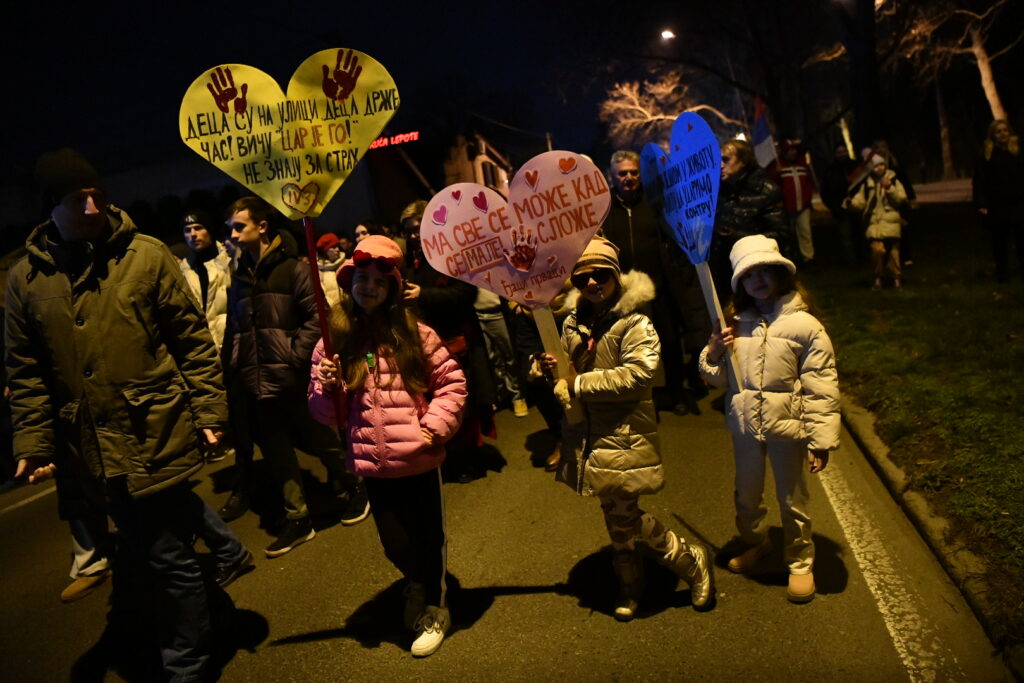 Đaci i studenti ispred Ministarstva prosvete pevaju "Deca su ukras sveta".