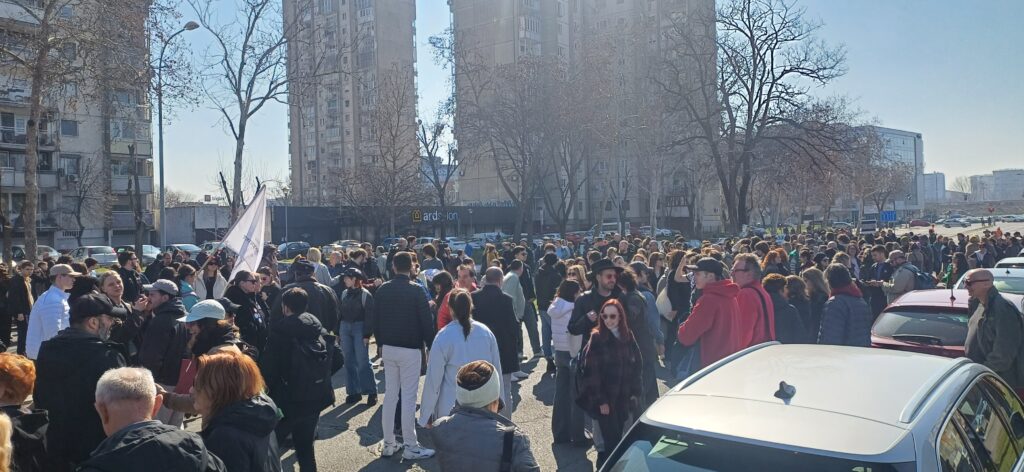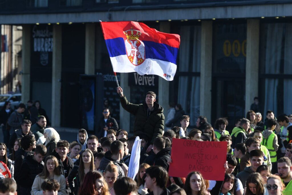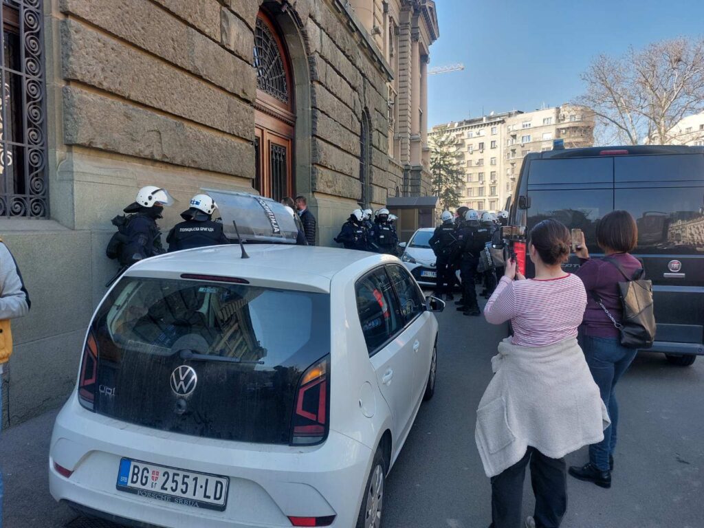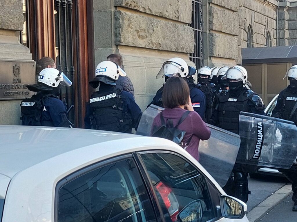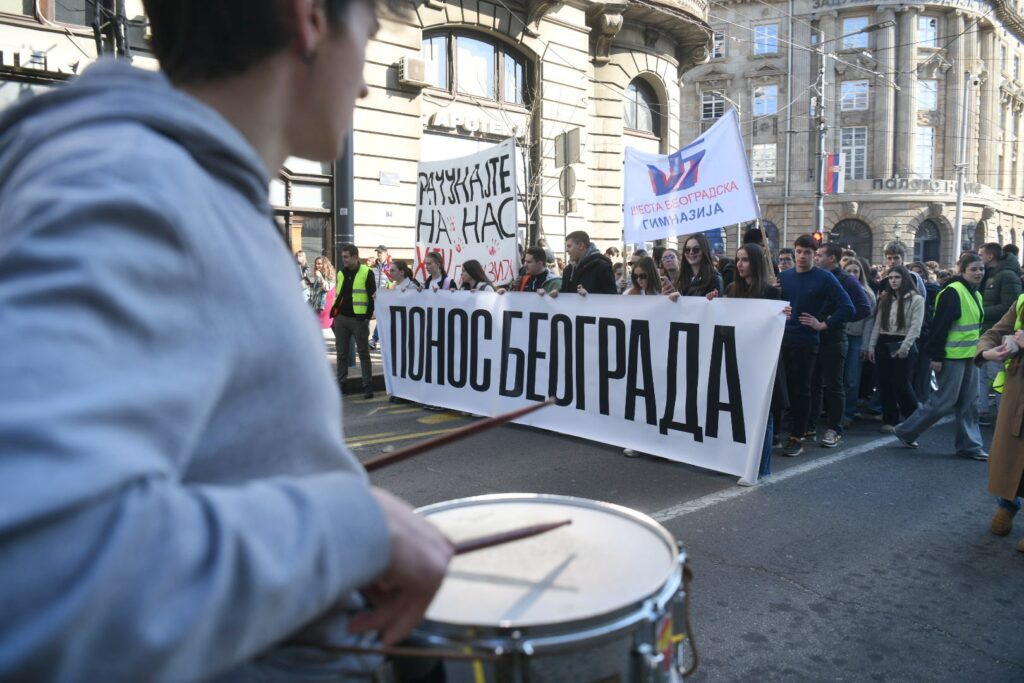 Kako javlja reporter Nova.rs, ispred Skupštine došli su đaci Šeste beogradske gimnazije i prosvetni radnici, dok su studenti tehničkih fakulteta sa srednjoškolcima sada u Ulici kralja Milana i kreću se ka Terazijama.