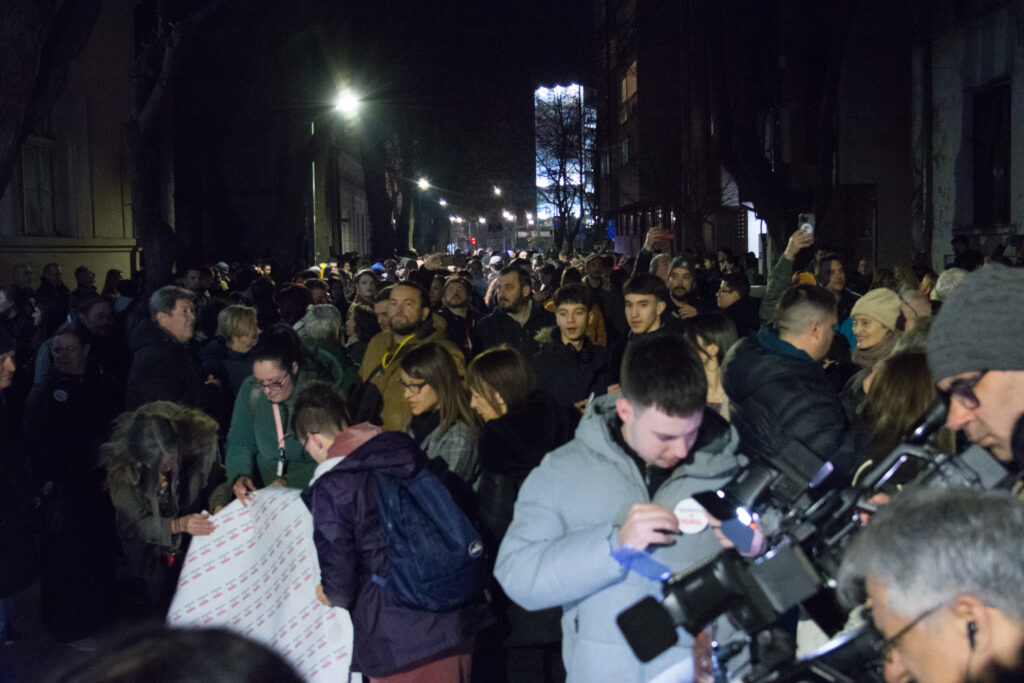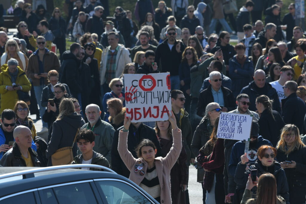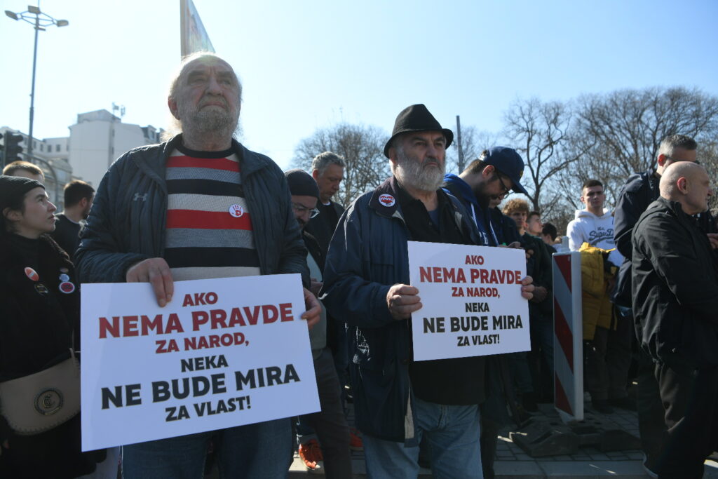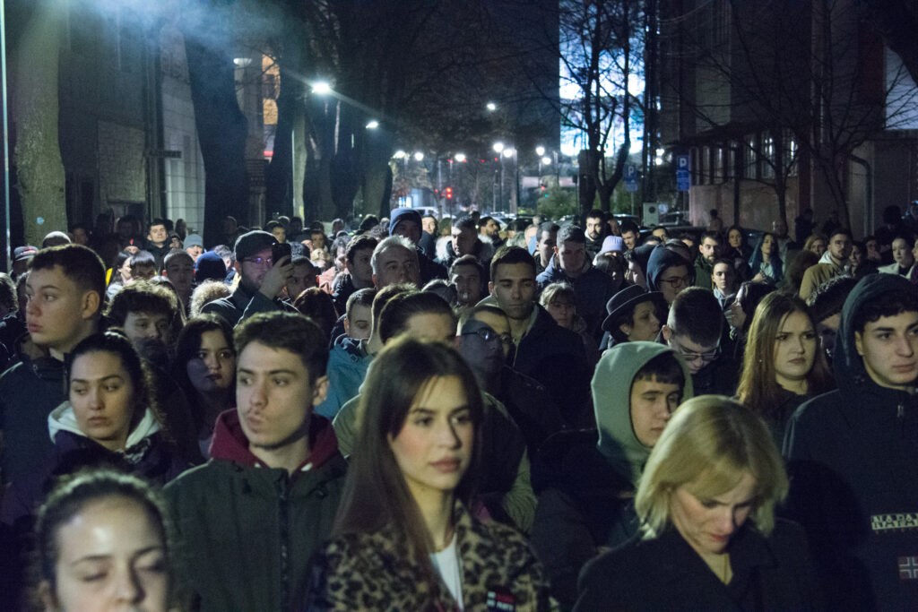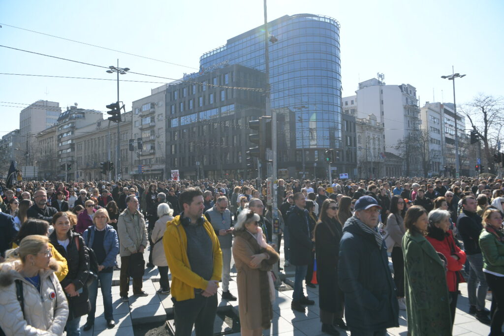 Nakon 15-minutne tišine, na raskrsnicu Bulevara kralja Aleksandra i Kneza Miloša, deo studenata je otišao u pravcu Bulevara kralja Aleksandra, dok je deo građana prešao ispred glavnog ulaza u Skupštinu Srbije i tamo pravi veliku buku.