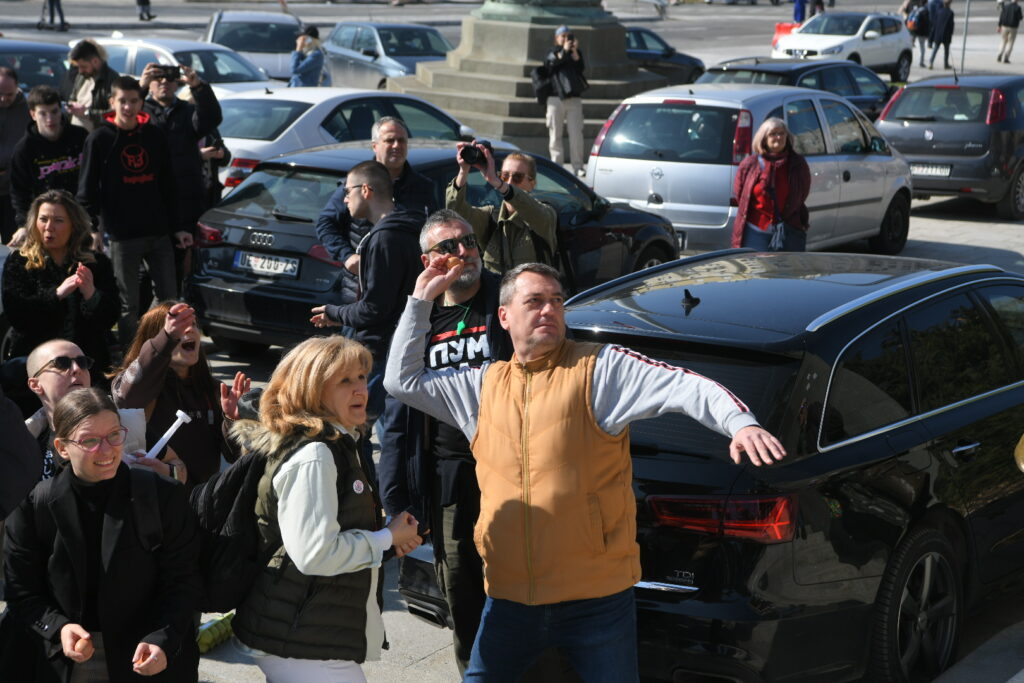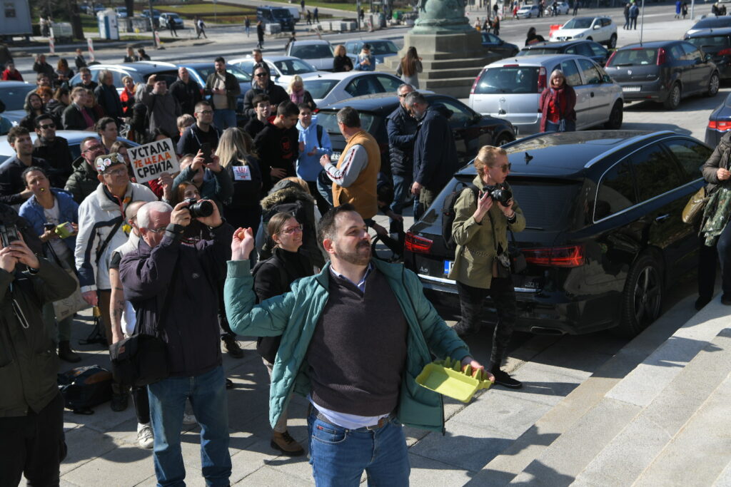 Okuplja se sve više ljudi ispred zgrade Skupštine.