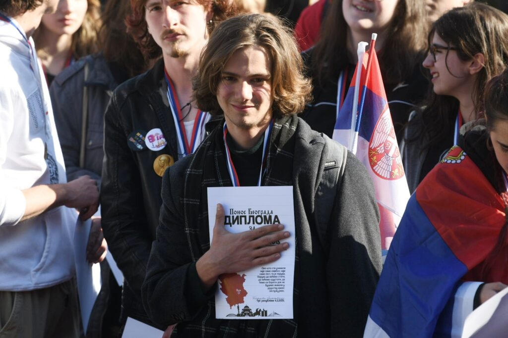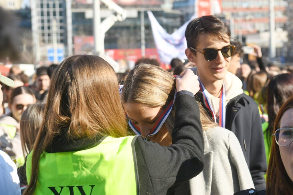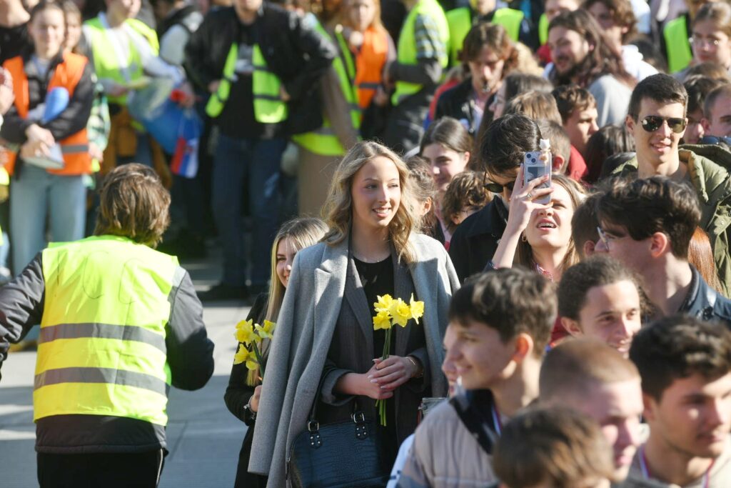Pročitana su imena svih srednjoškolaca koji su marširali do Niša i svako od njih je nagrađen velikim aplauzom.