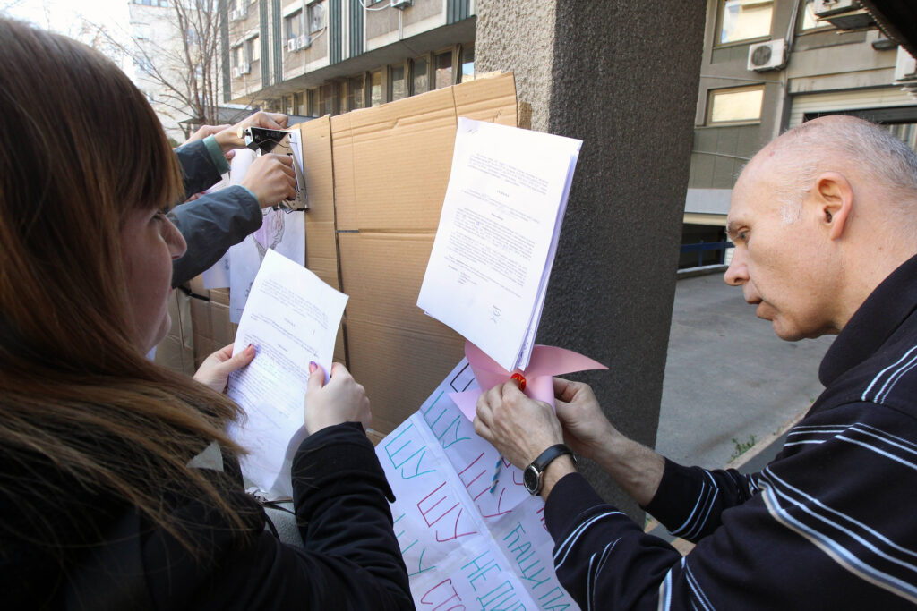Nastavnici ispred Školske uprave u Zahumskoj.