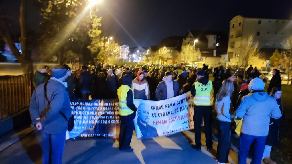 U 19 časova počelo je okupljanje roditelja i brojnih građana ispred Osnovne škole "Despot Stefan Lazarević" i Osnovne škole "Pavle Savić".