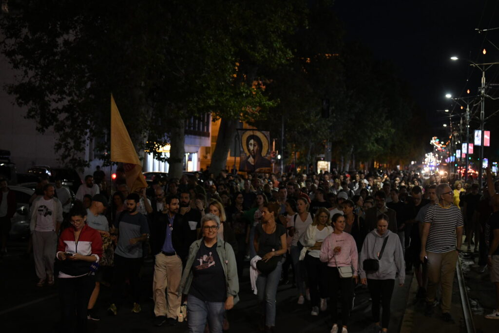 Beograđani koji su se okupili kod Vukovog spomenika krenuli su u protestnu šetnju Bulevarom kralja Aleksandra.