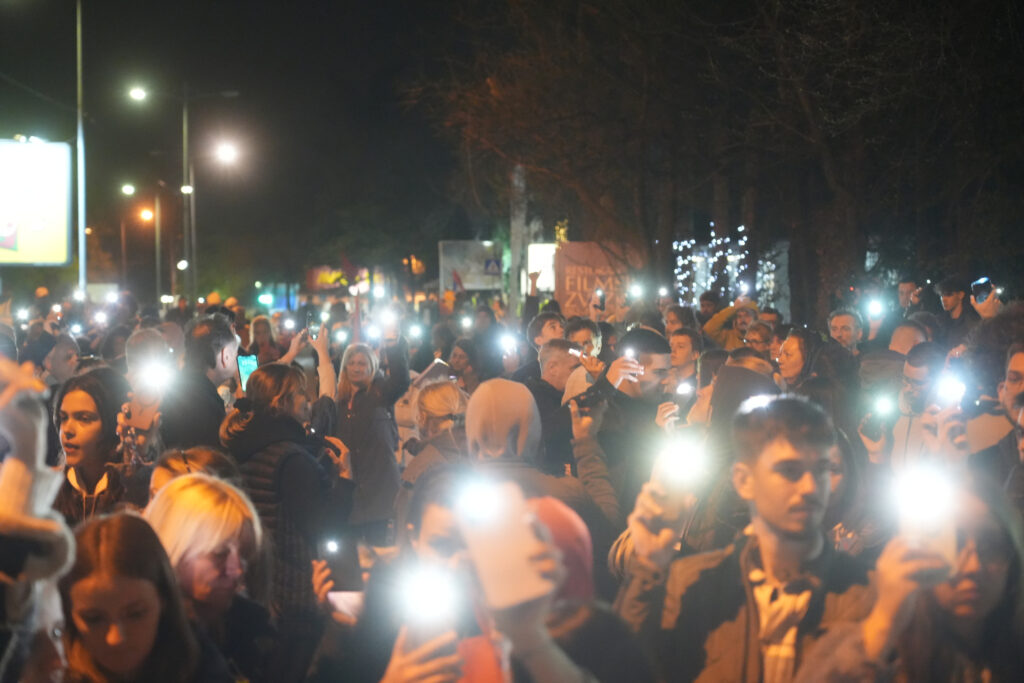 Veliki broj studenata i građana okupio se večeras u kampusu u Novom Sadu na poziv studenata Fakulteta tehničkih nauka.