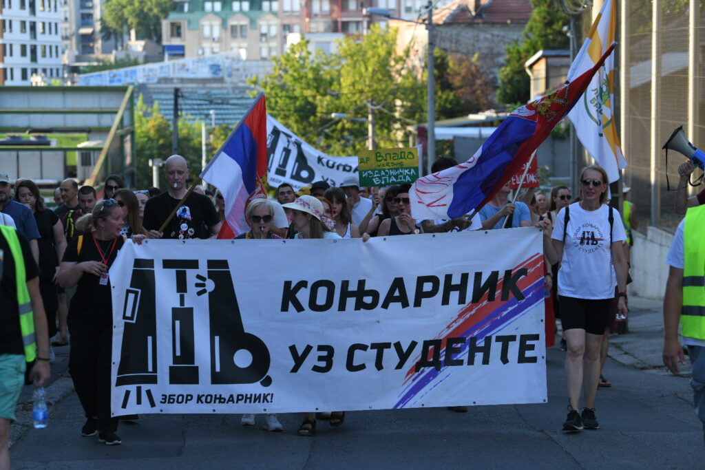 Stanovnici Konjarnika, Šumica, Denkove bašte, Medakovića, Braće Jerković, Učiteljskog naselja, Dušanovca i Malog Mokrog Luga okupili su se na raskrsnici Ustaničke i Vojislava Ilića u 17.30, odakle su krenuli ka Okružnom zatvoru u Bačvanskoj ulici.