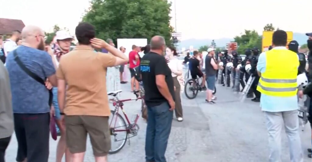 Te su prvo sklonili trojicu mladića koji su nosili srpsku zastavu, a onda su krenuli ka drugim građanima koji su mirno sedeli na kolovozu.