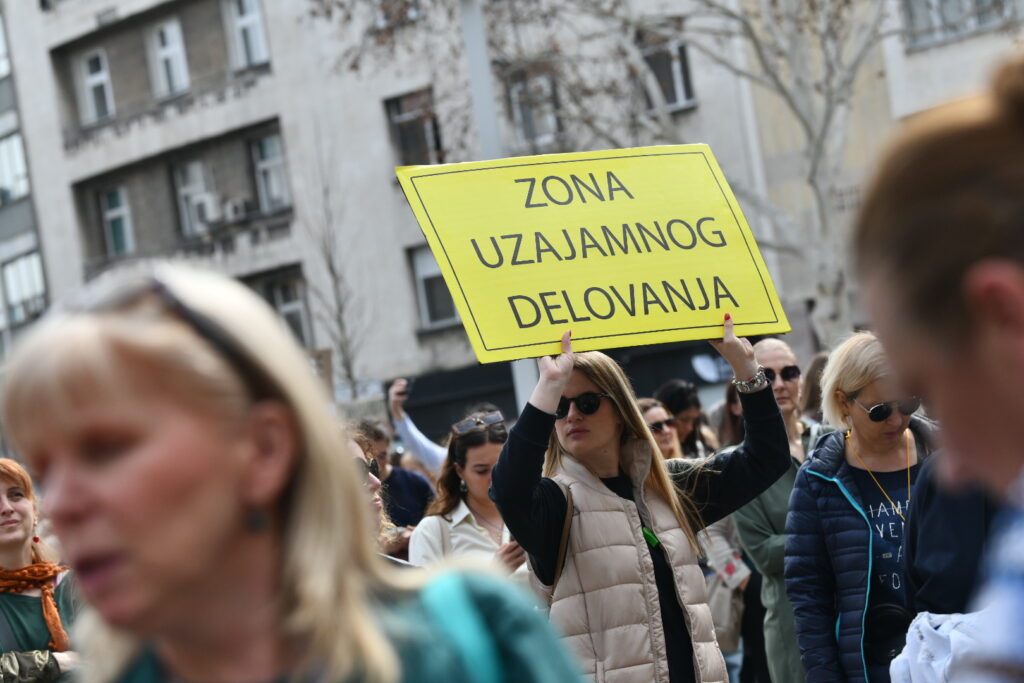Ranije najavljeni protest studenata i sindikata Republičkog geodetskog zavoda (RGZ), u znak podrške radnici tog preduzeća Mariji Zarubici, u toku je.