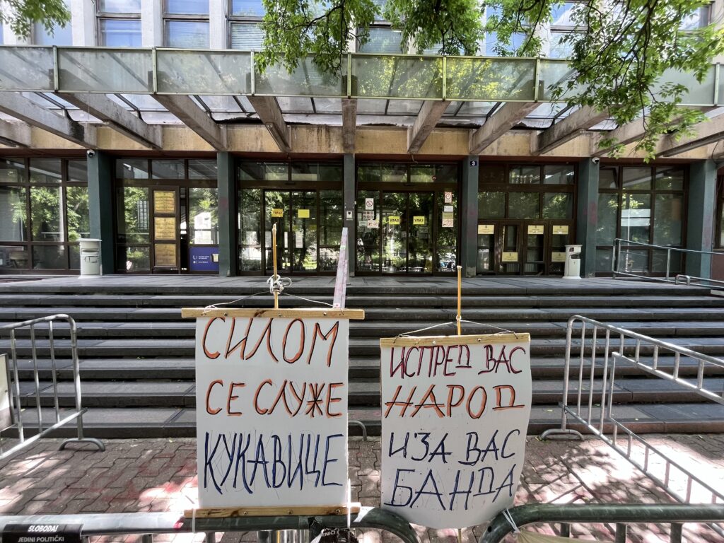 Studenti i građani postavili su dodatnu ogradu, naspram ograde JKP "Parking servisa", koja je postavljena još prvog dana blokade zgrade suda, koja je počela pre 12 dana.
