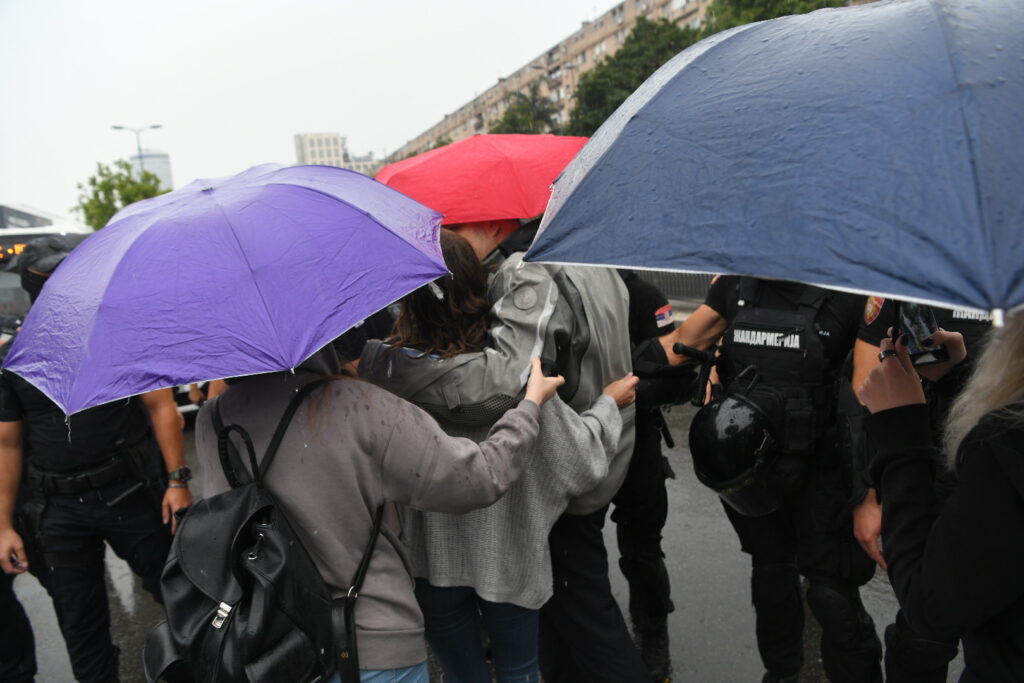 Kako je za N1 rekla studentkinja Valentina, policajci i pripadnici Žandarmerije rekli su okupljenima da se sklone sa kolovoza jer krše javni red i mir.