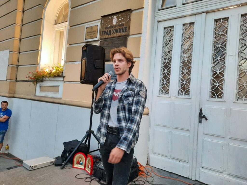 Pred svoje sugrađane izašao je i student Pavle Cicvarić koji se zahvalio svima koji podržavaju borbu za slobodu, pravdu i pravedne izbore.