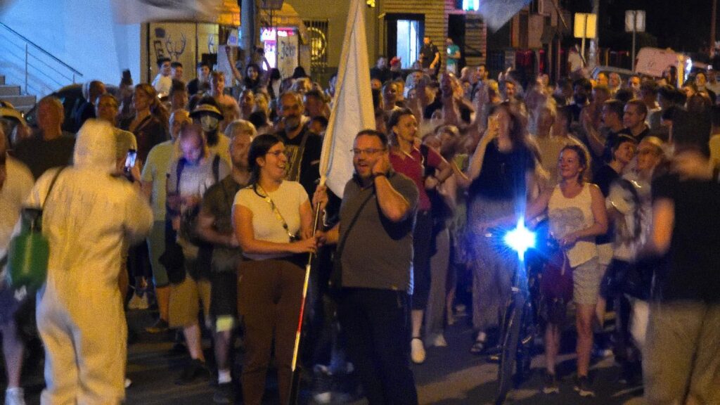 Tokom protestne šetnje uzvikivali su "Pumpaj", "Ua" i "Svi na ulice", praveći buku pištaljkama i trubama.