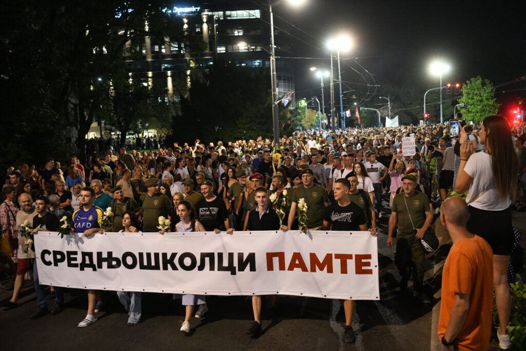 Kolona građana, koje predvode srednjoškolci, stigla je do Trga republike, gde bi ovaj komemorativni skup i šetnja trebalo da se privede kraju.