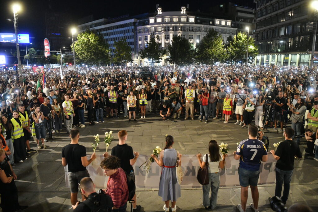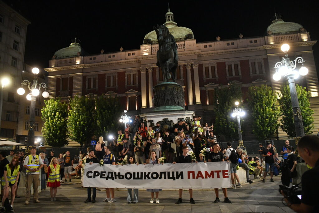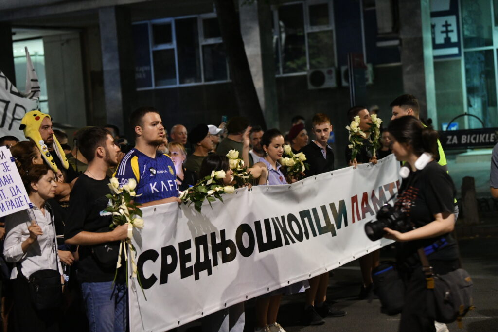 „Da li će nas zaštititi oni koji su u zgradi Vlade Srbije tukli Nikolinu i druge studente i građane pendrecima i pretili silovanjem. Ko će nas štititi? Sada samo jedni druge možemo zaštiti. Dovde smo došli jer su ljudi navikli da ćute. Polažemo belu ružu, jer sudstvo i pravda umiru“, poručili su srednjoškolci. Više pročitajte u posebnoj vesti.