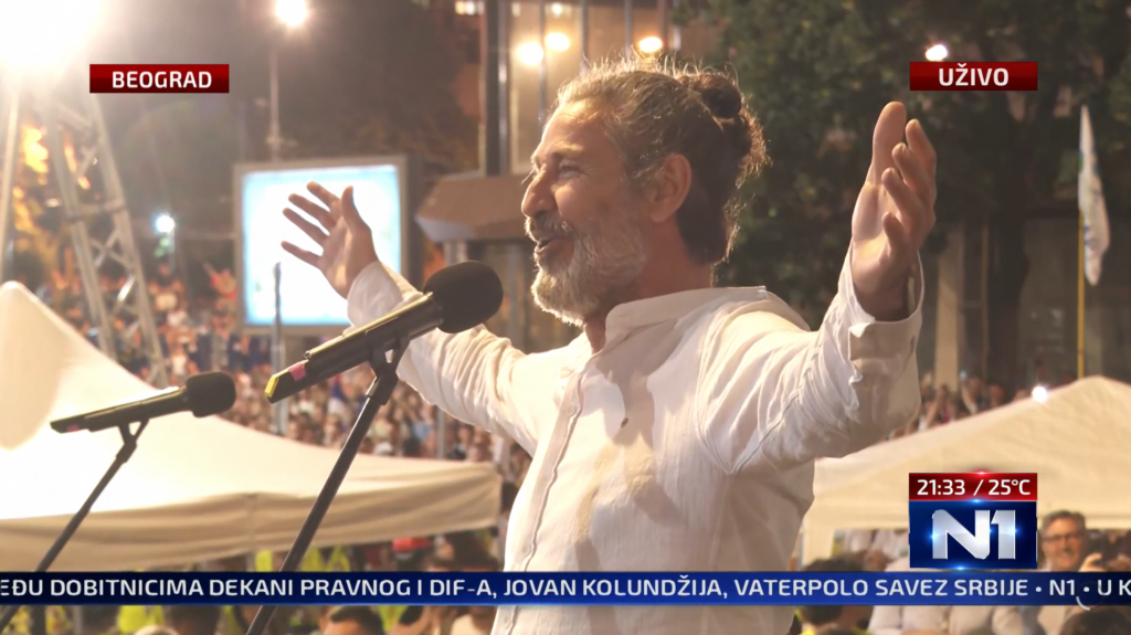 "Narode Srbije vreme je isteklo, ali ne nama. Od ovog trenutka ovo nije studentski protest. Ostajemo ovde kao građani. Ovaj narod ne planira da se povuče. Najavljivali su kraj za 20. januar, pa za 15. mart, pa za Vidovdan. Svi ćemo ustati, svi ćemo pobediti. Studentska lista biće glas svih građana. Kontrolisaćemo izbroe kaa nikad do sad. Pobeda će biti naša. Kada nas vidite na ulice, znajte da predamo radimo i pripremamo izbore. Mi vam nećemo reći šta da radite. Narod treba da bira. Vođeni savešću, uzmite slobodu u svoje ruke. Verujemo u vas".