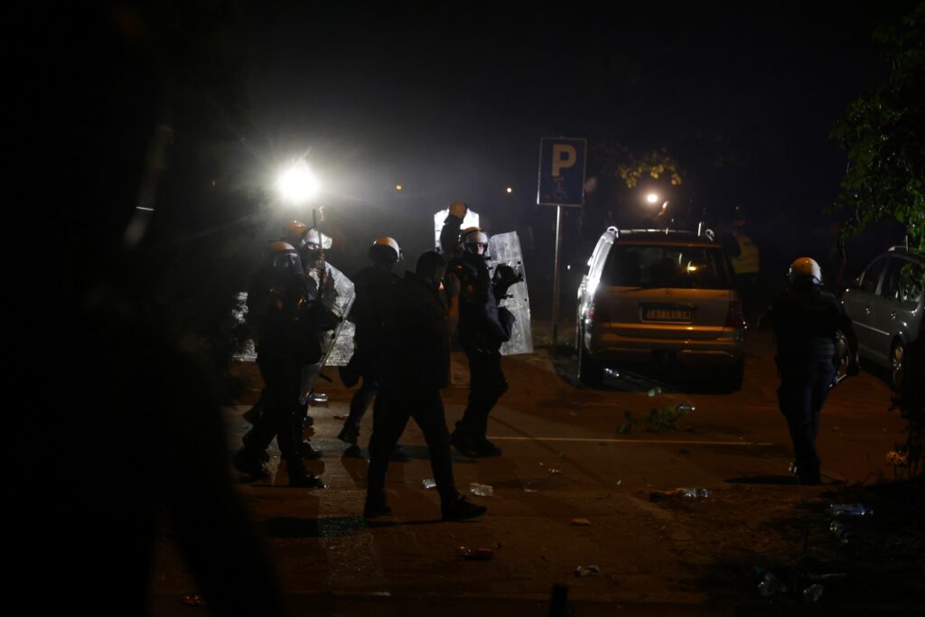 U Novom Sadu policija je ugasila svetlo, javila je reporterka N1. Kordon policije, pod punom opremom za razbijanje demonstracija i pod maskama, nalazi se pored jednog đačkog igrališta, do su na zemlji oni koji će verovatno biti privedeni.