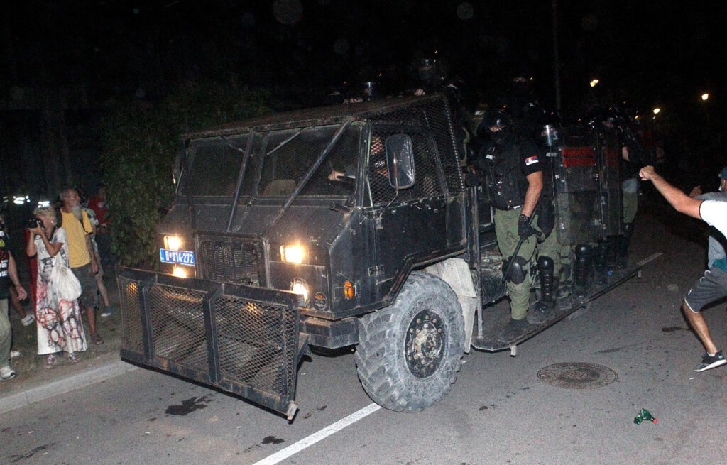 Na ulice Novog Sada večeras su izvedena brojna oklopna vozila, a u jednom trenutku dva vozila zaletela su se u građane koje je policija potiskivala.